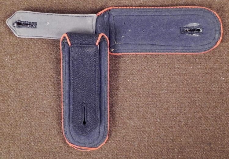 HERE IS A GERMAN WEHRMACHT SHOULDER BOARD PAIR. IT HAS A GRAY WITH SILVER TRESS AND RED PIPING. THERE IS A SLIP ON VARIATION. * * * *
