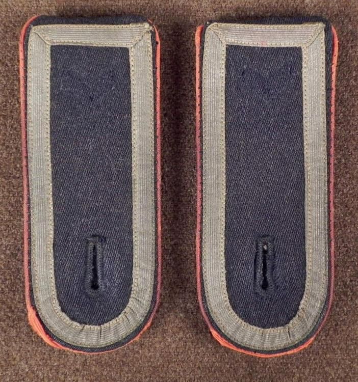 HERE IS A GERMAN WEHRMACHT SHOULDER BOARD PAIR. IT HAS A GRAY WITH SILVER TRESS AND RED PIPING. THERE IS A SLIP ON VARIATION. * * * *