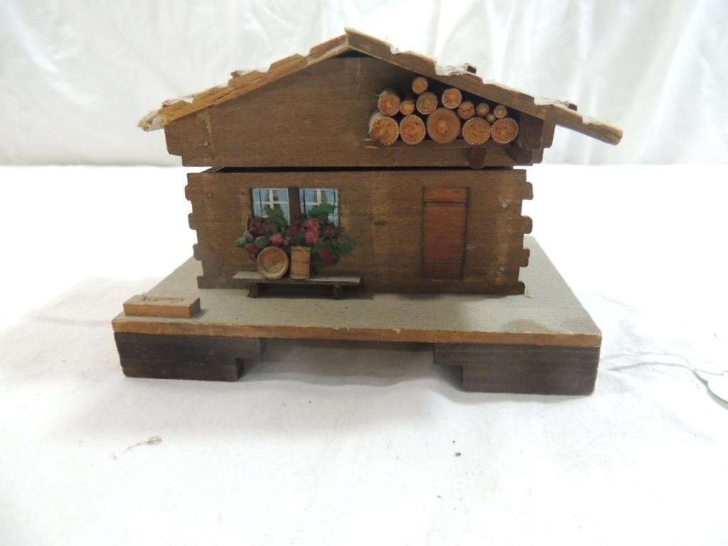 MADE IN GERMANY WOODEN COTTAGE MUSIC BOX, DECORATIVE MUSIC BOX GERMAN, AS SHOWN SEE PHOTO FOR MORE DETIALS.