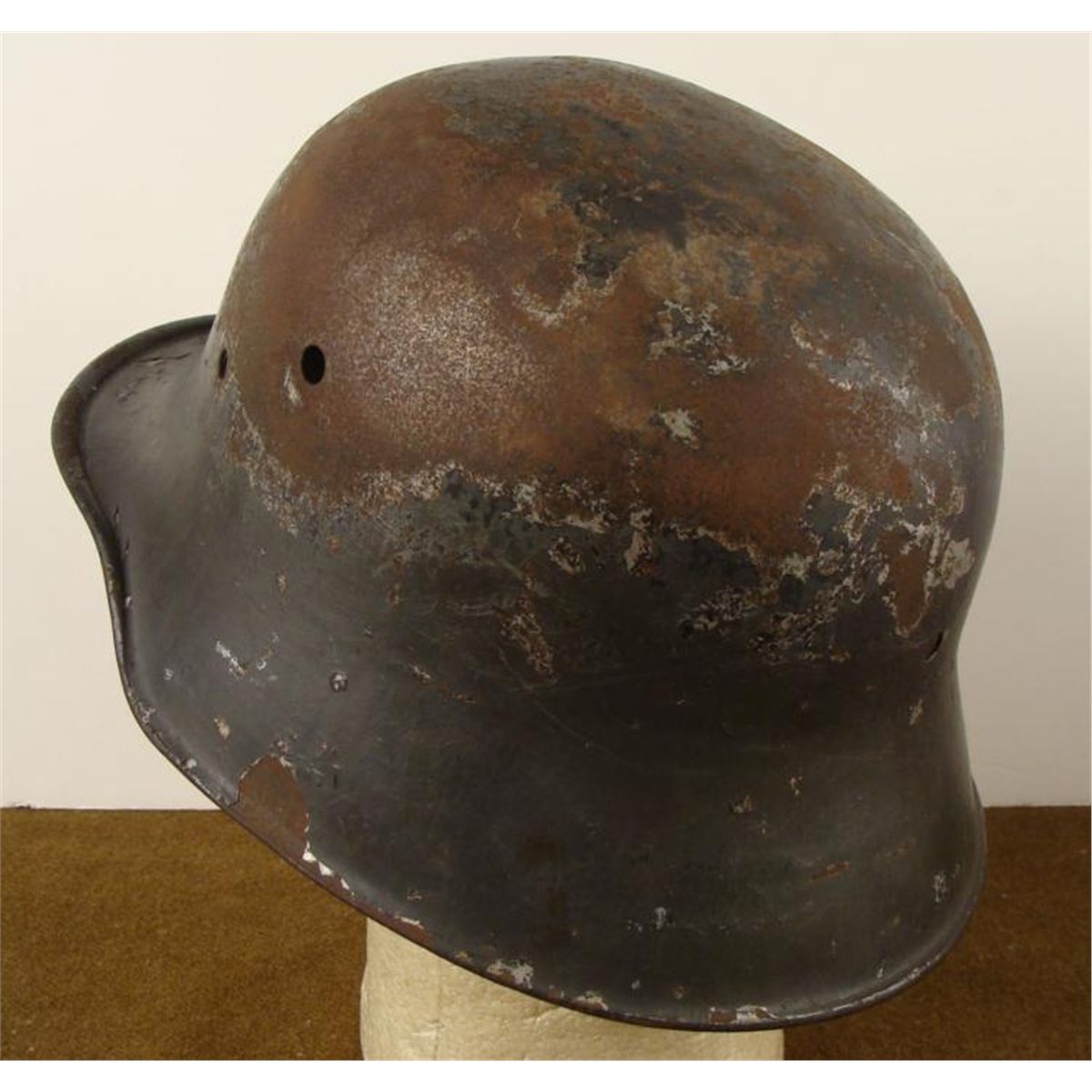 GERMAN WWI M18 COMBAT HELMET SHELL-ORIGINAL * LARGE SIZE-SHOWS A GOOD DEAL OF COMBAT DAMAGE-SHELL ONLY-NICE DISPLAY HELMET *
