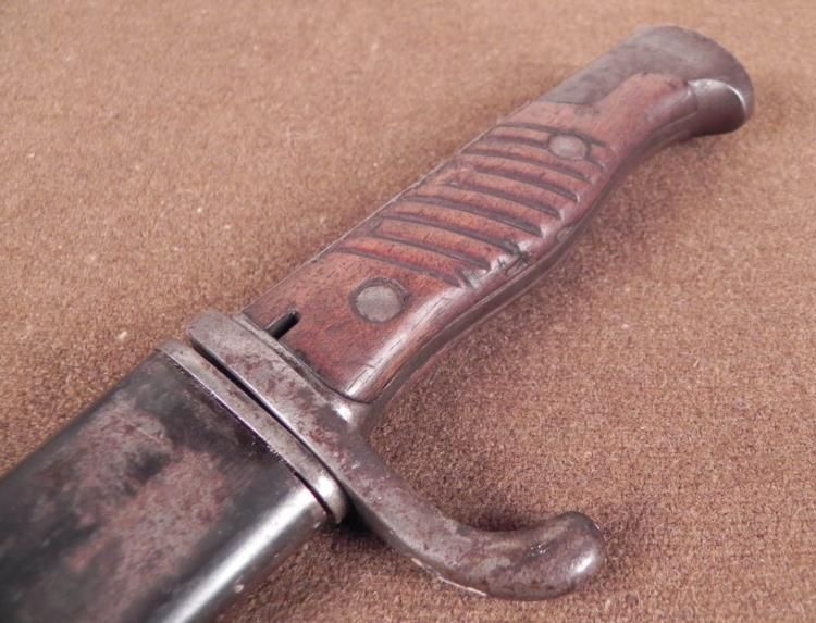 GERMAN WWI M1898/05 BUTCHER BAYONET BY ALEX COPPEL-SOLINGEN-1915 MARKED * ORIGINAL 1915 GERMAN BUTCHER BAYONET WITH SCABBARD-MODEL 1898/05 (K98)--RICASSO MARKED MAKER "ALEX COPPEL-SOLINGEN---SPINE MARKED "CROWN L 15 & PROOF MARK"--FROG PRONG NOT PRESENT & DENT IN SCABBARD MAKES IN-AND-OUT DIFFICULT (BUT NOT IMPOSSIBLE)-RARE BAYONET