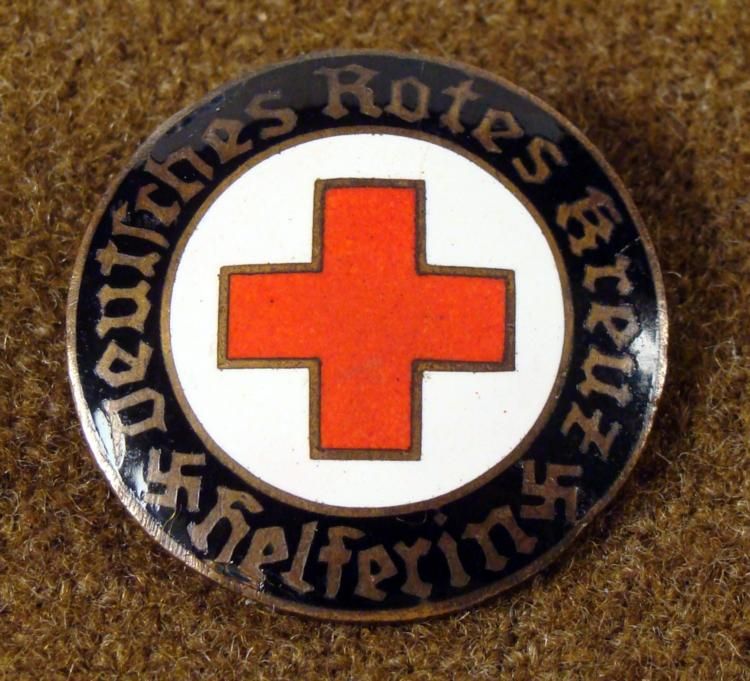 OFFERED HERE IS AN ORIGINAL GERMAN WWII DRK/DEUTCHES ROTES KREUZ; A NAZI RED CROSS MEMBERSHIP BROACH. IT IS A PINBACK WITH THE MAKERS MARK ON THE REVERSE: "GES GESCH--E L M". THE BROOCH IS APPROXIMATELY 1 1/4" IN DIAMETER AND IS IN EXCELLENT CONDITION. *