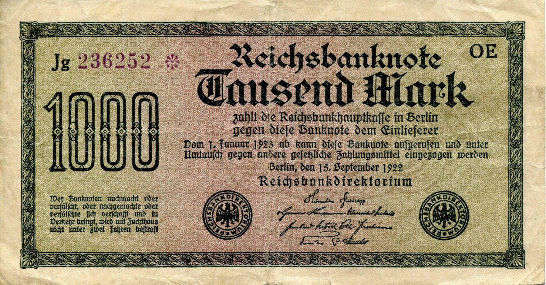 GERMANY 1922 INFLATION PAPER CURRENCY 1000 MARK