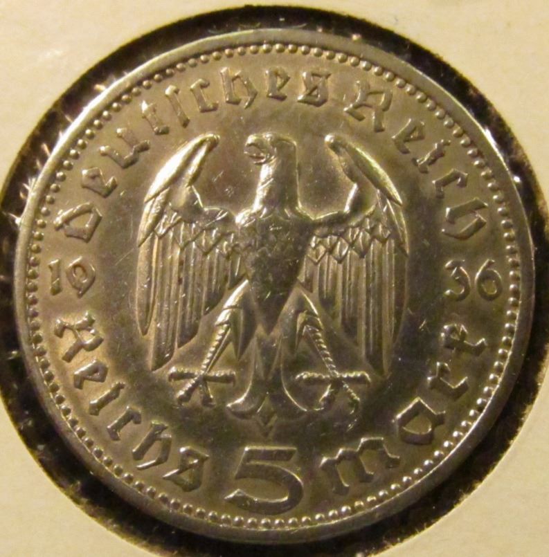 GERMANY 1936-A SILVER 5 MARK COIN