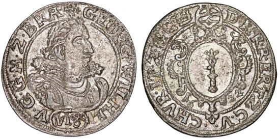 Rev: Crowned Ornamented Arms, 16-22 on sites.
