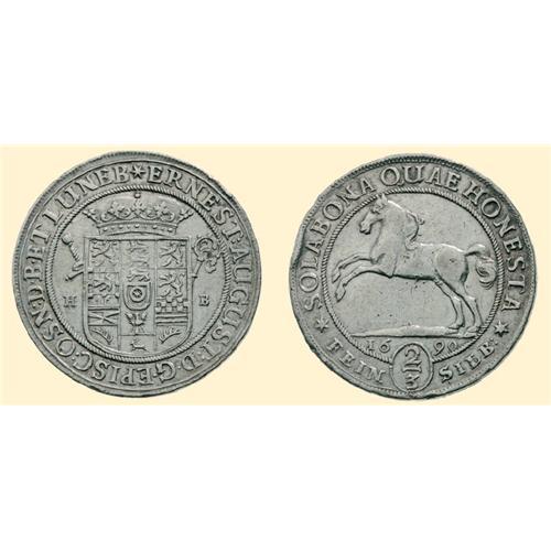 GERMANY COINS 2/3 Thaler 1690 (12.93 g), Clausthal. Arms / Ho