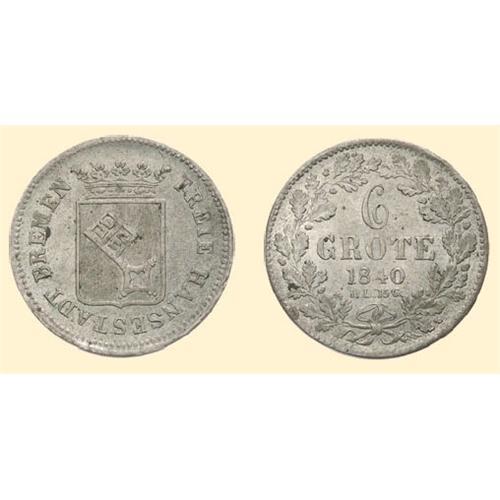 6 Grote 1840 (2.05 g). Arms / Value in oak wreath. KM. 213.