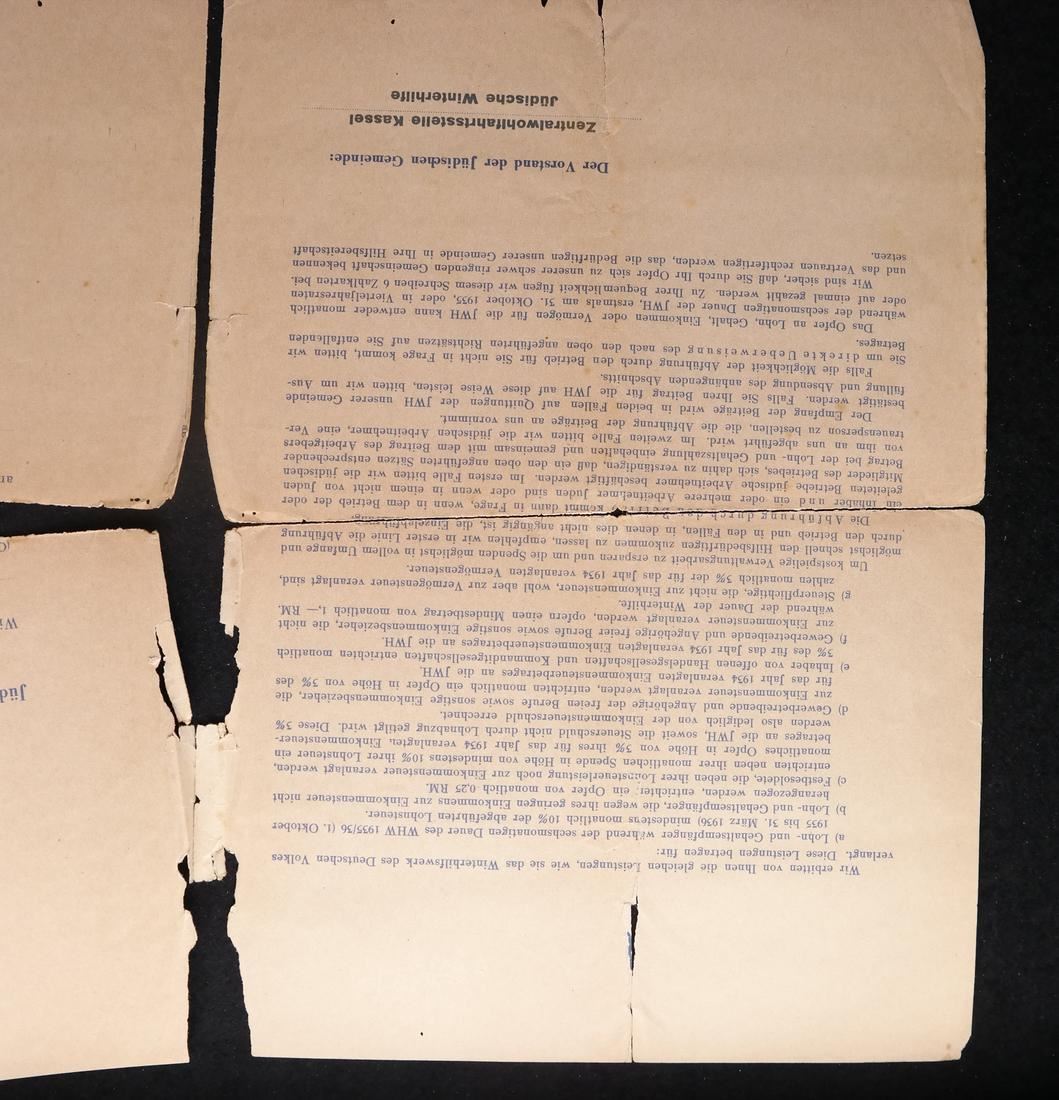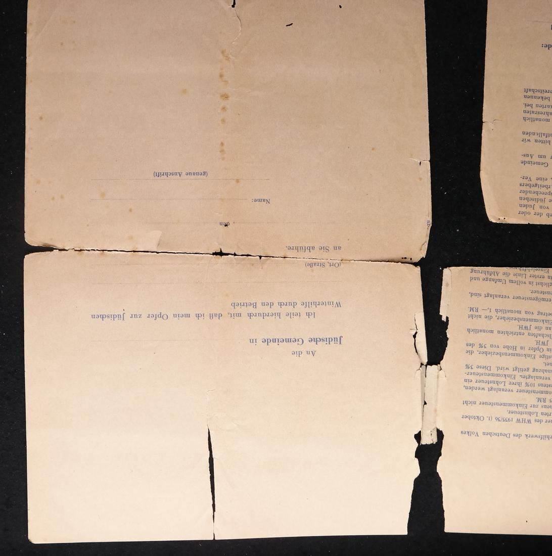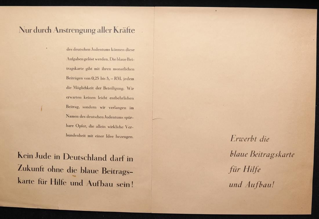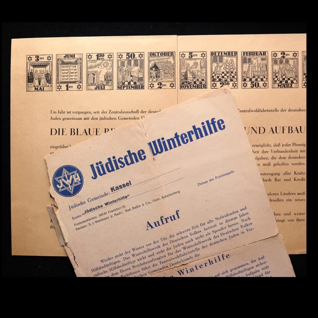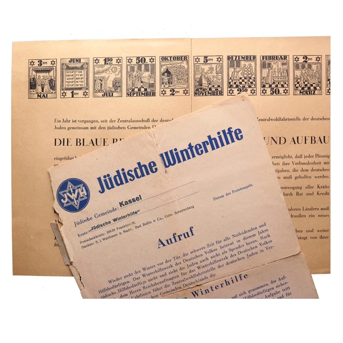 Jdische Winterhilfe two-page announcement and Hilfe und Aufbau announcement/flier, both with faults.