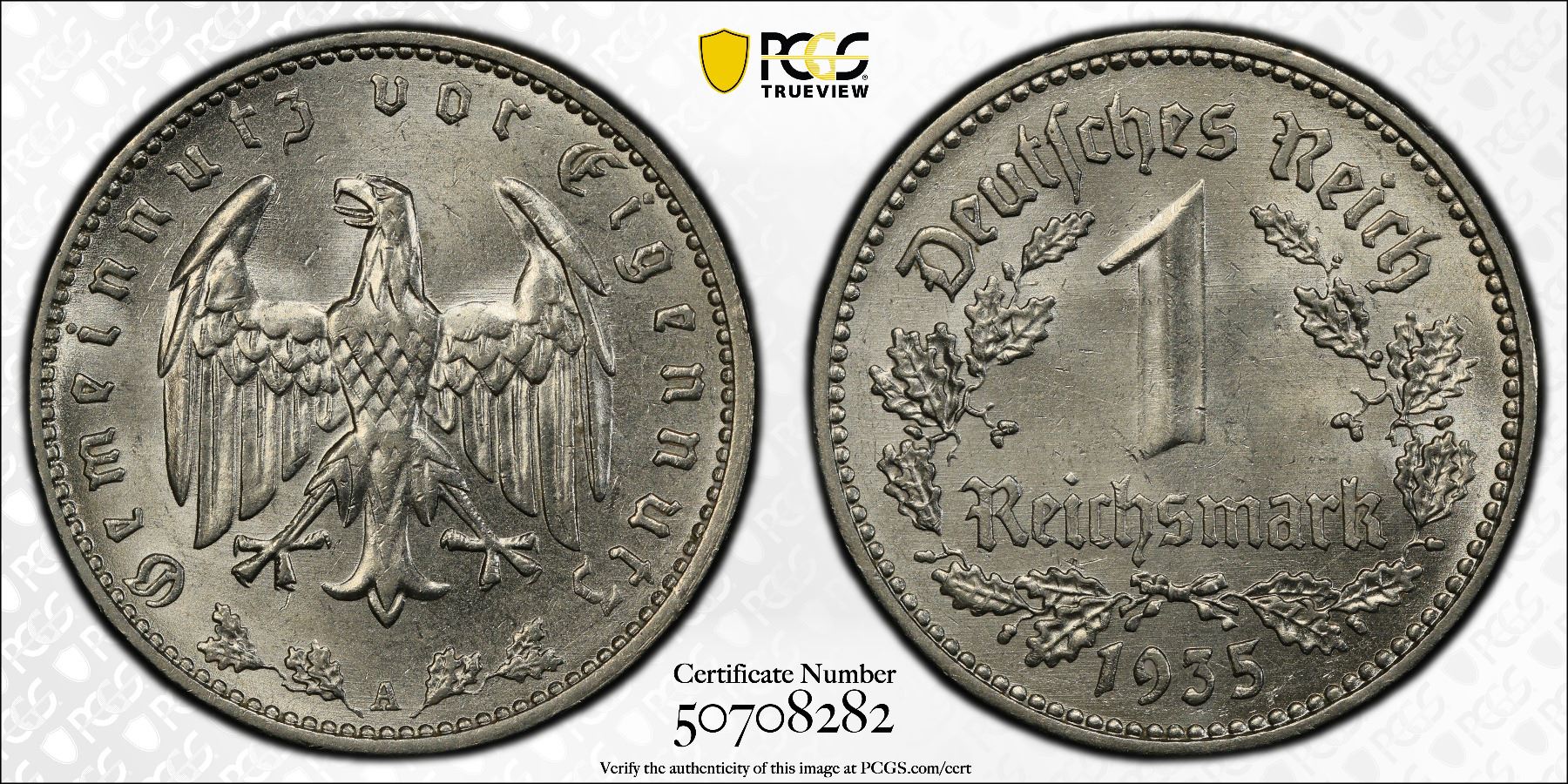 GERMANY: Third Reich, 1 reichsmark, 1935-A, KM-78, Y-81, J-354, a wonderful mint state example! PCGS graded MS64, ex Joe Sedillot Collection.