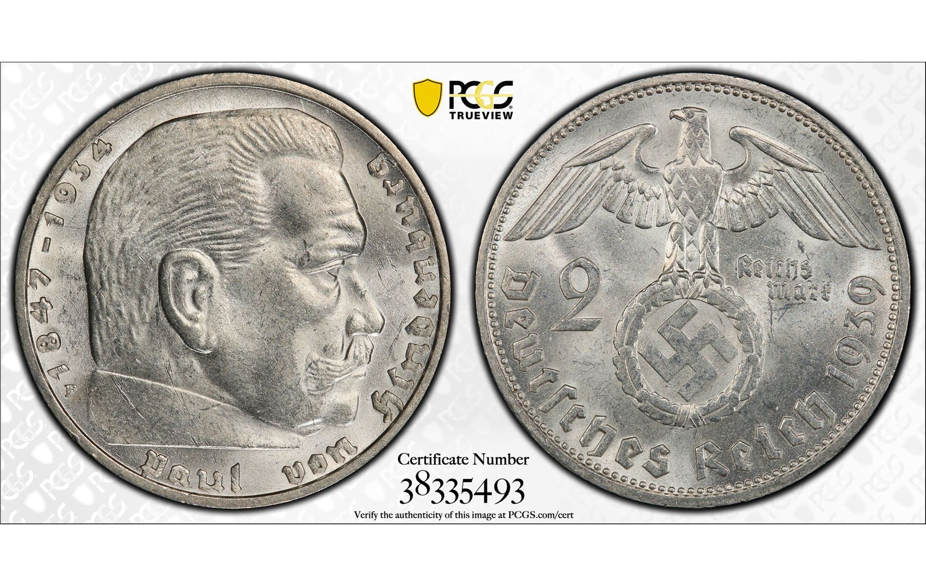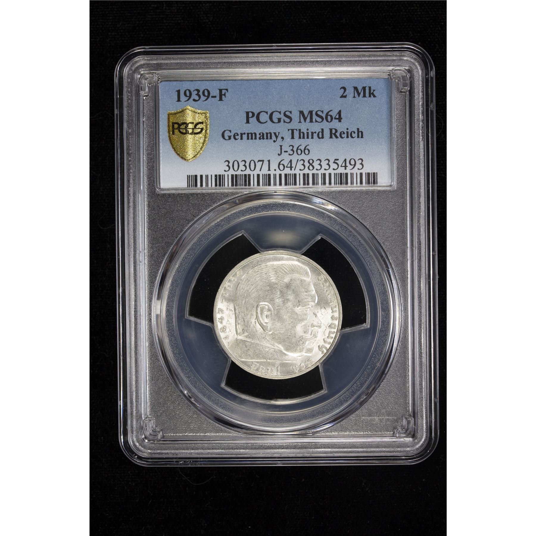 GERMANY: Third Reich, AR 2 mark, 1939-F, KM-93, J-366, PCGS graded MS65 RD.