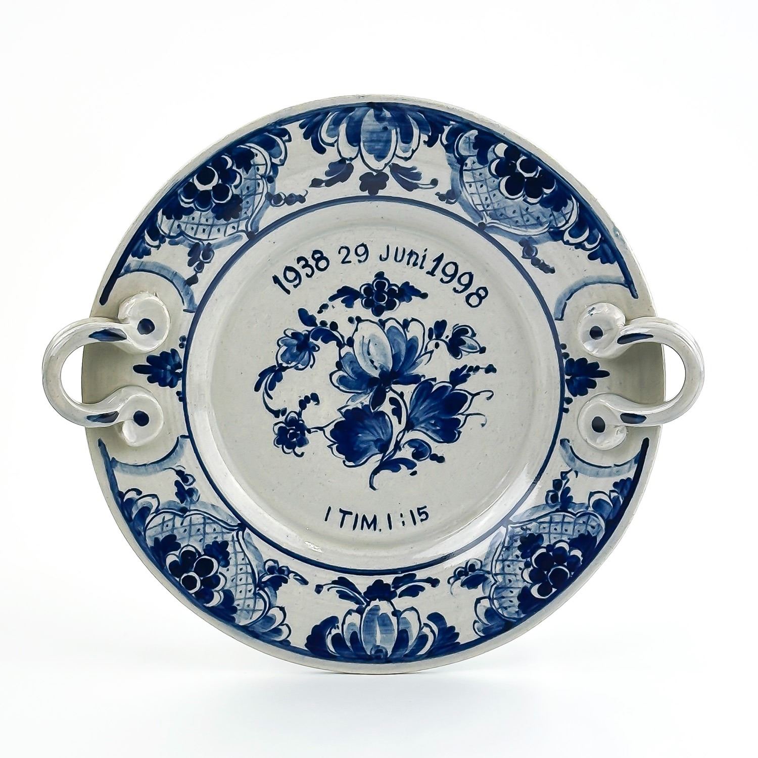 #8138 - POTTERY PLATE SCULPTURE - GERRIT SCHIPPER SIGNED DUTCH PLATE. DATE SIGNIFICANCE UNKNOWN. MEASURES: 8.75” (22 CM) DIAMETER - EXCLUDING HANDLES