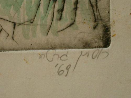 The work is also Hand Signed in pencil at the lower right margin by the artist in Hebrew letters, as well as dated "69" (1969) underneath the signature.