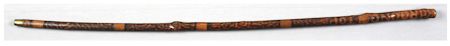 A fine relic from the Gettysburg battlefield, a 36" pyro-designed knobby wood cane 1" brass tip at bottom, from a local collection. This cane was likely carved by a veteran on the battlefield as a souvenir, ca. 1880's. Coated with clear varnish. Very good.