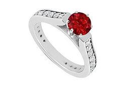 A brilliant-cut round GF bangkok red ruby is set in the center & is accented by rows of smaller round CZs. This gorgeous engagement ring is made in 10K white gold & has a total gem weight (TGW) of 1.00 carat.
