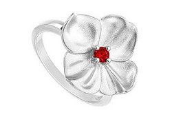 This floral bright and blooming flower ring with single round vibrant red GF bangkok ruby sparkling in the center. Perfectly made in shiny .925 sterling silver rhodium and has a total gem weight (TGW) of 0.10 carat.