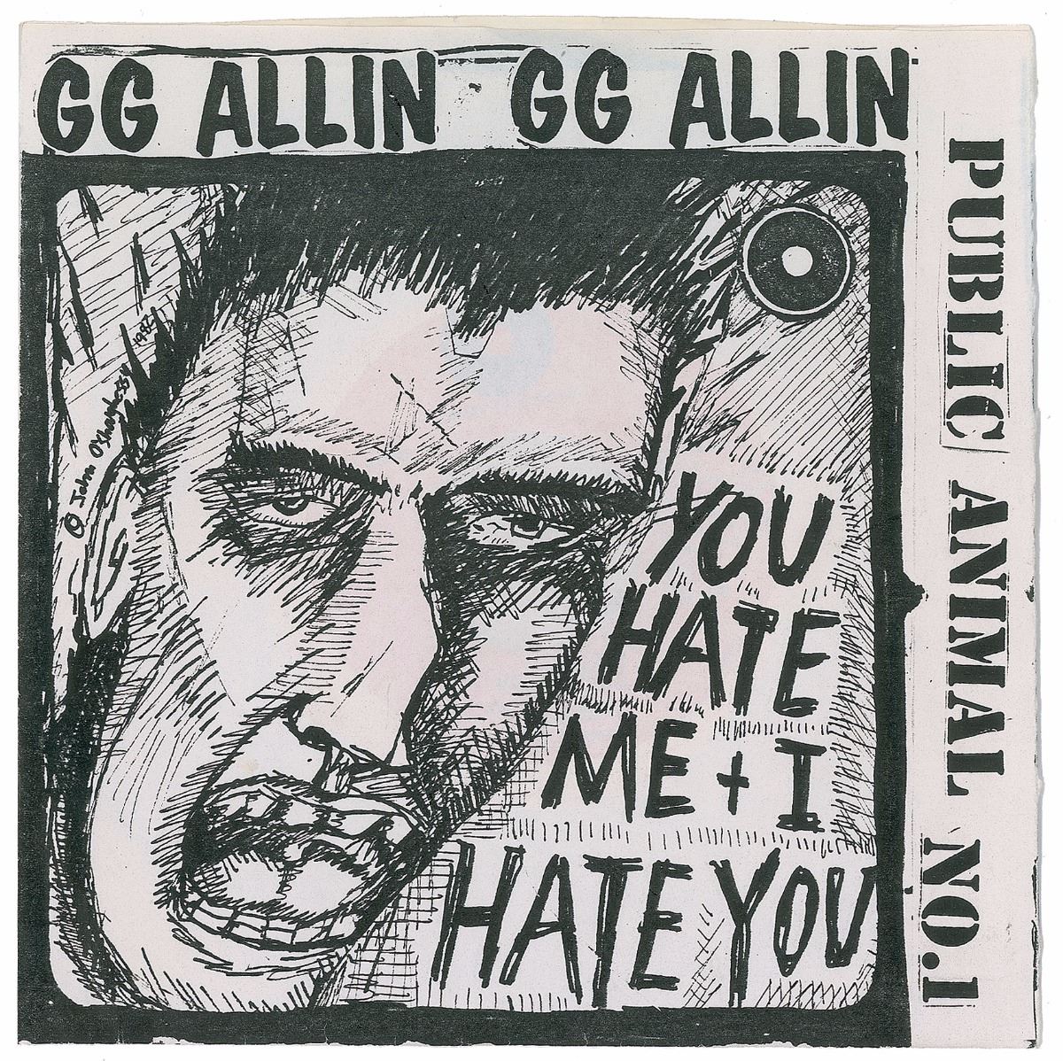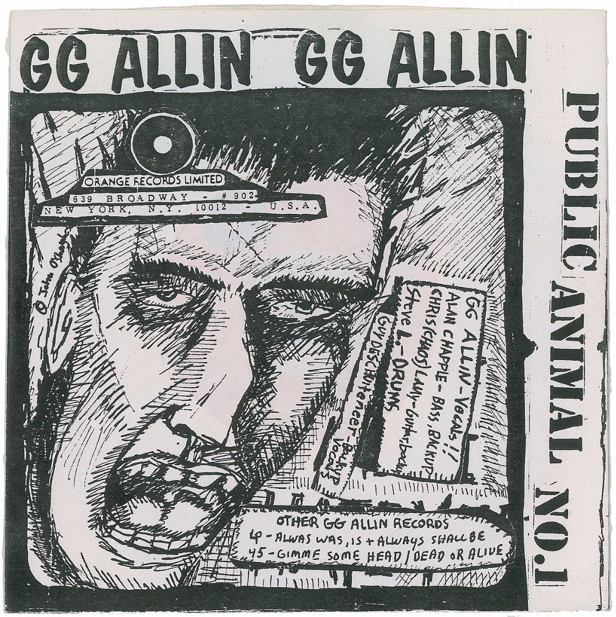 American punk rock singer-songwriter (1956–1993) whose obscene live shows, varied musical influences, and public self-destruction made him an unprecedented cult legend. Uncommon Orange Records Limited 7? record of Public Animal No. 1, featuring “You Hate Me & I Hate You” on one side of the disc, and “Automatic” and “Assface” on the other. Accompanied by the original paper sleeve. In fine condition. The record is included.