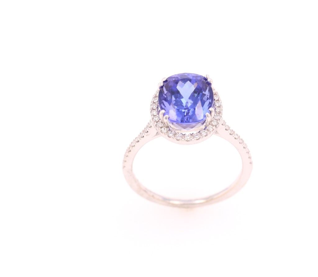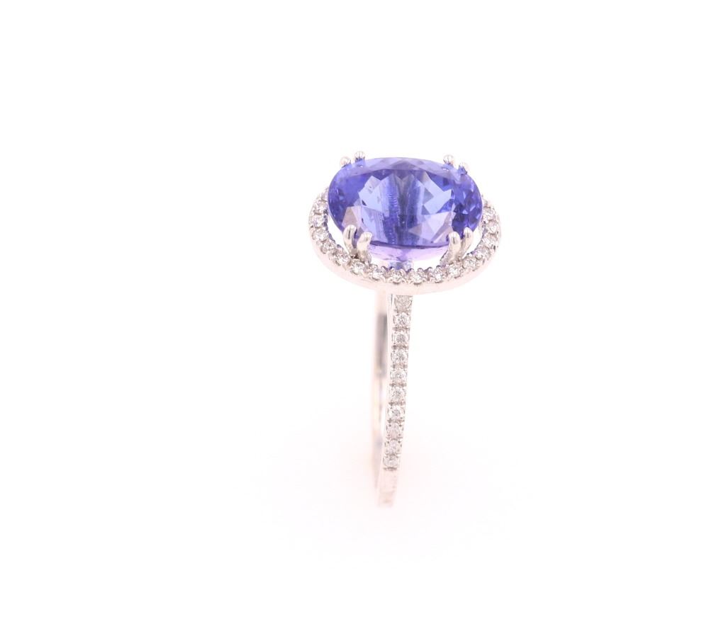 For your consideration is this elegant 18K white gold, Tanzanite Zoisite & diamond ring with GGA paperwork. The ring shows a wonderfully and professionally crafted 18K white gold construction with a beautiful Tanzanite Zoisite gemstone set in the center. The natural Tanzanite Zoisite gemstone features an oval shape with a faceted cut, measurements of 10.87 x 8.81mm, a clarity rating of Type I, a 5/5 violet / blue color, excellent symmetry and a carat total weight of 4.79. Accenting the ring are forty-seven natural, round brilliant cut diamonds with dimensions of 1.0 x 0.8mm, a clarity rating of VS2 - SI1, a color rating of G - H, excellent symmetry and polish and a carat total weight of 0.22. The piece comes complete with GGA(Gem Assure Gemological Appraisals, GGA Appraisal Number#: GGA060856 and trace number: RN032851) report and appraisal confirming the above info and giving a total value of $14,980.00. The ring is size US 7 1/2 and weighs 4.4 grams. RN032851.