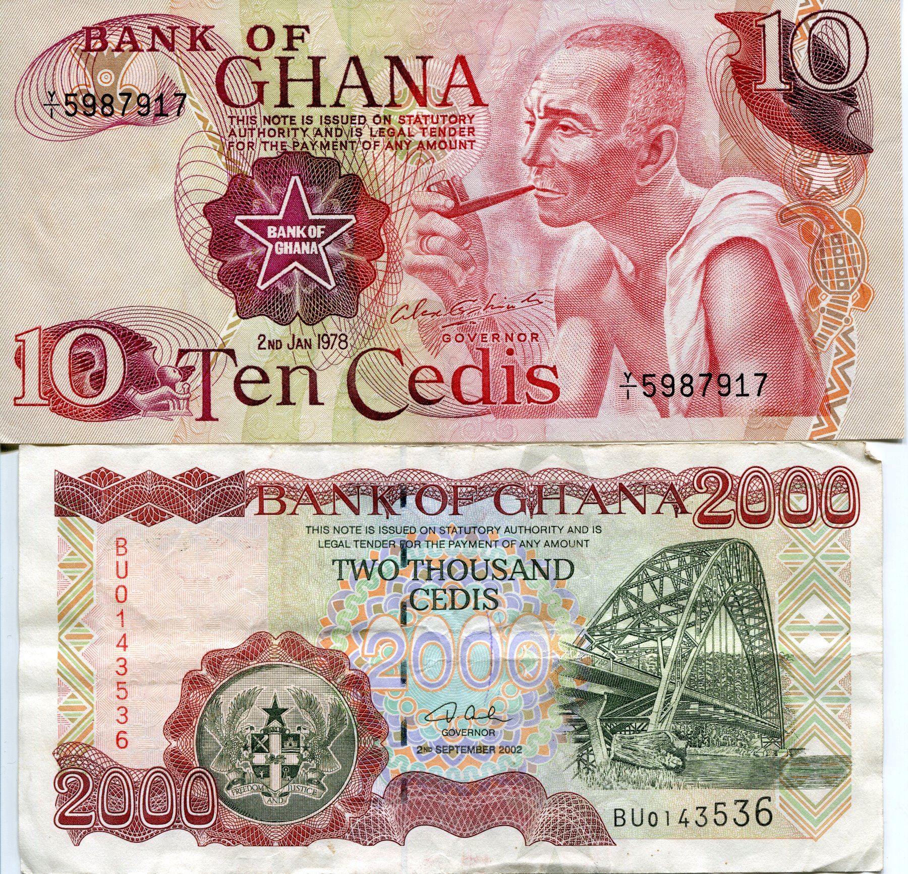 GHANA 2 NOTES 10 - 1978 & 2000 (2002) CEDIS