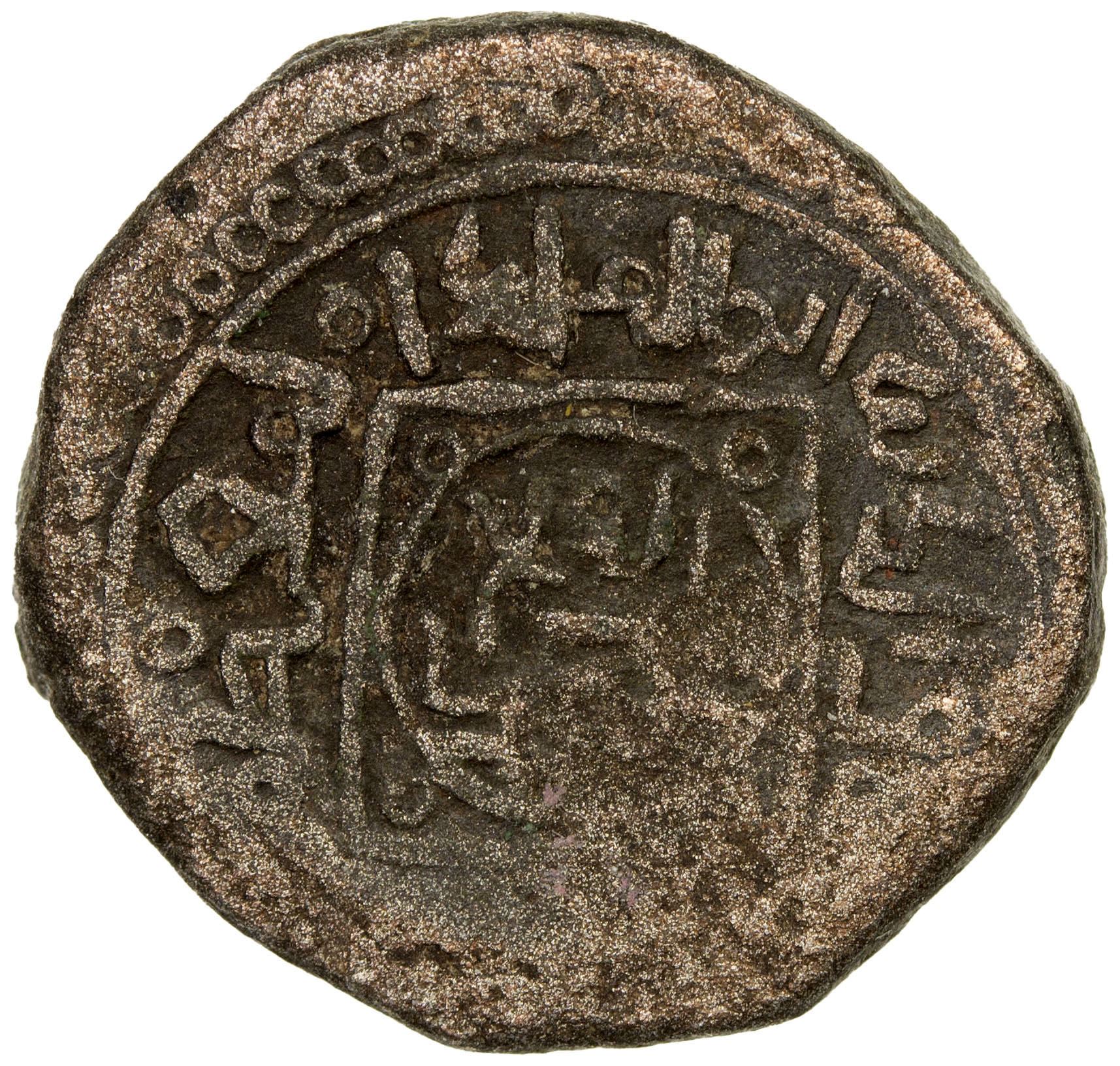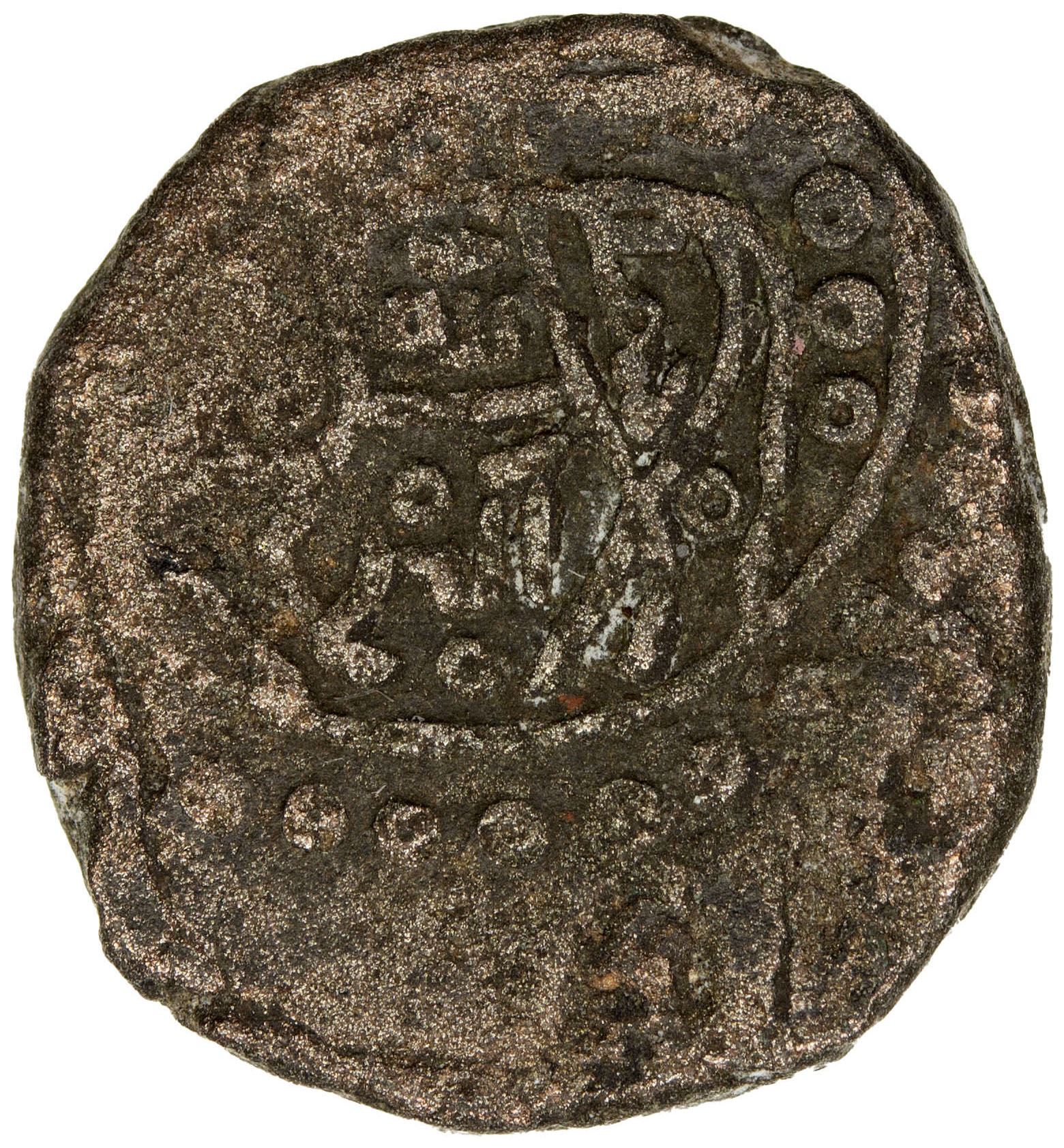 GHORID: Muhammad b. Sam, AE jital (3.24g), NM, ND, A-C1759, Tye—, Zeno—, bull type, also with hamd lillah akbar // al-fath muhammad within central circle-square, al-malik al-mu`azzam sham al-dunya wa'l-din in margin, partial weakness, unpublished type, VF, RRR. This type will appear as A-C1759 in the next edition of the Checklist.
