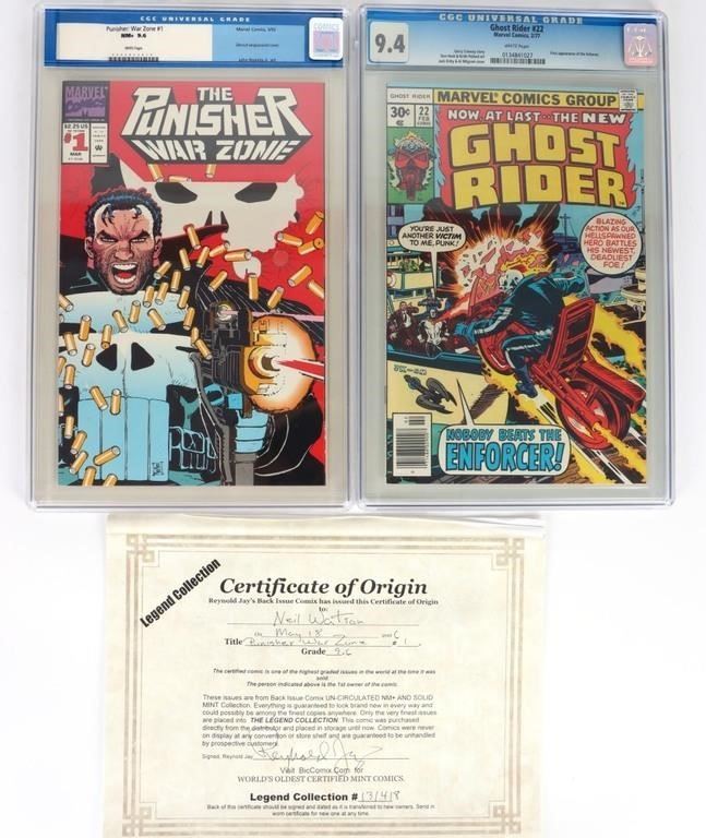 Ghost Rider & The Punisher CGC Collection Lot to include: 1977 Ghost Rider #22 CGC 9.4 & 1992 Punisher: War Zone #1 CGC 9.6. (Includes certificate of Origin)