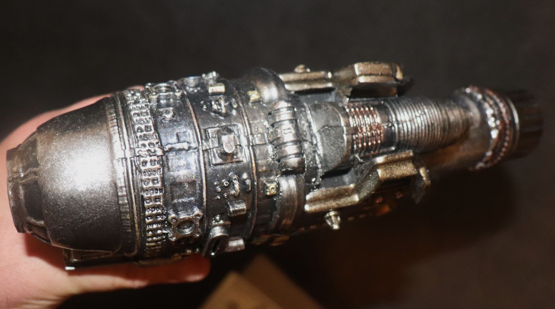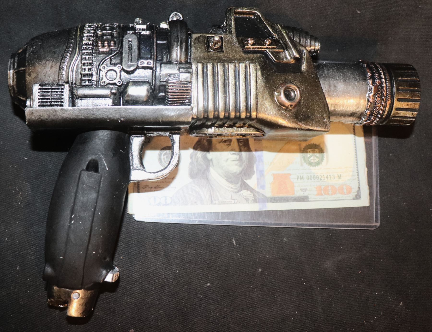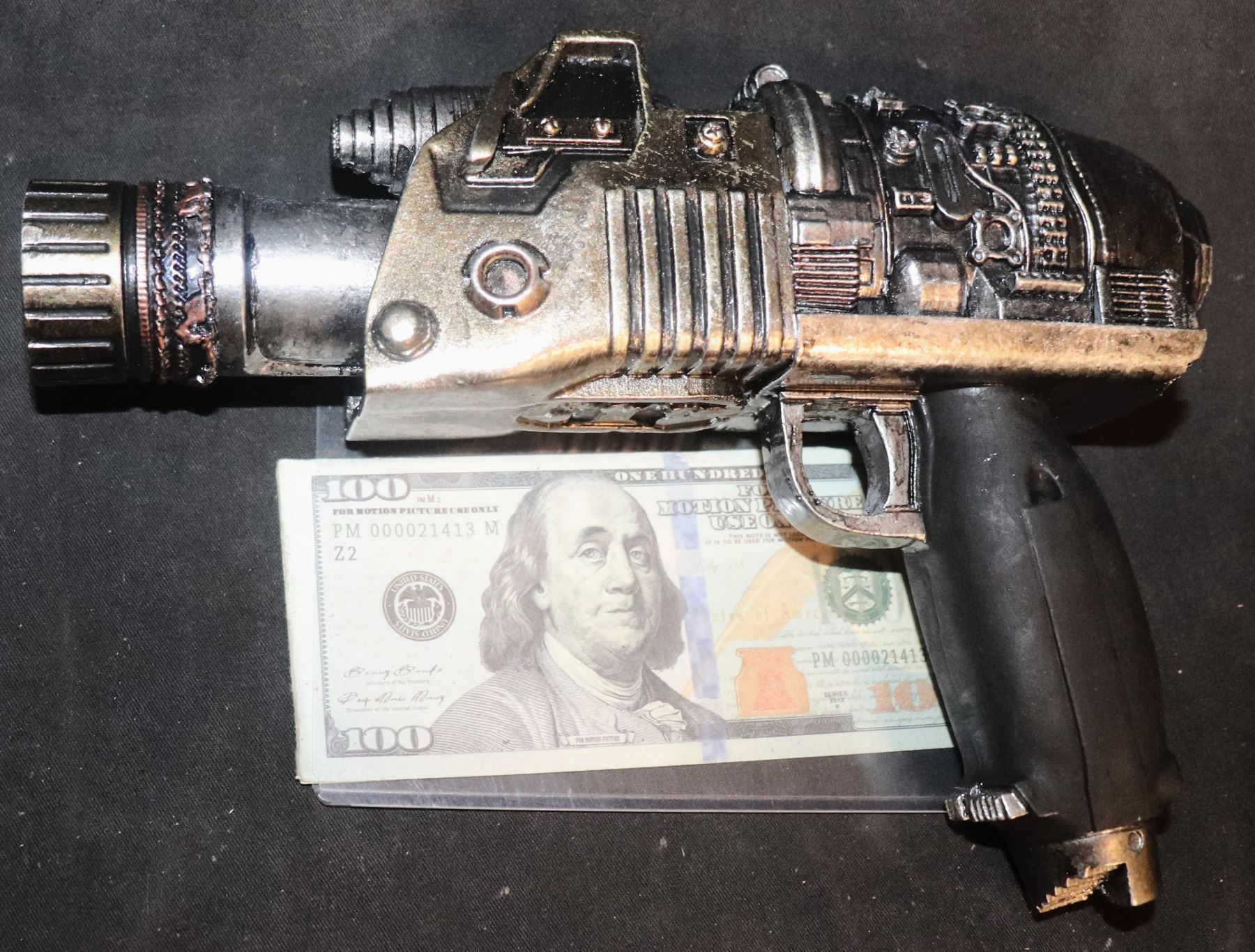 This was painted the gold and black to show detail and was made to be part of a shop display of weapons that never came together. You will find a few other lots similarly painted.