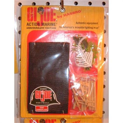 This 2003 Anniversary Edition of the 1964 carded GI Joe Action Marine Tent Camouflage set is, except for the "Anniversary Edition" markings on the card, is a replica of the 1964 set. It includes Marine tent poles and stakes, camouflage netting, and camouflage leaves. Check out the photos and feel free to ask any questions. Thanks!