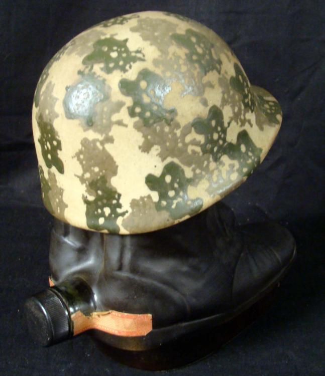 GI MILITARY BOOTS & CAMO HELMET-CERAMIC PIECE BY JIM BEAM-VINTAGE 1984 * GREAT DISPLAY PIECE- 8X9" *
