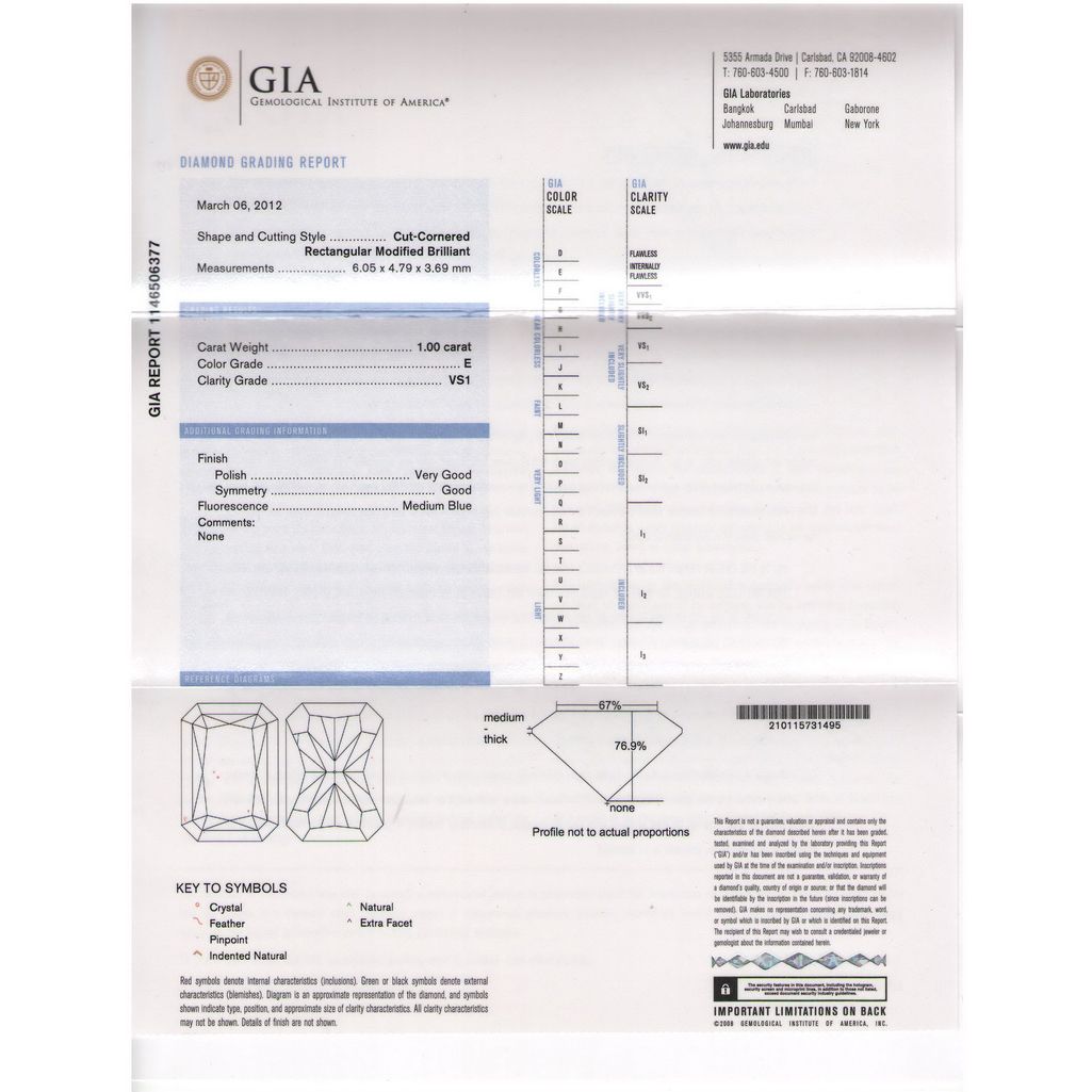 GIA 1.00 ctw Certified Radiant Diamond E,VS1 **|**|** ; MSRP: $9200