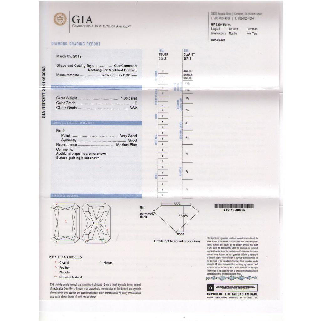 GIA 1.00 ctw Certified Radiant Diamond E,VS2 **|**|** ; MSRP: $8100