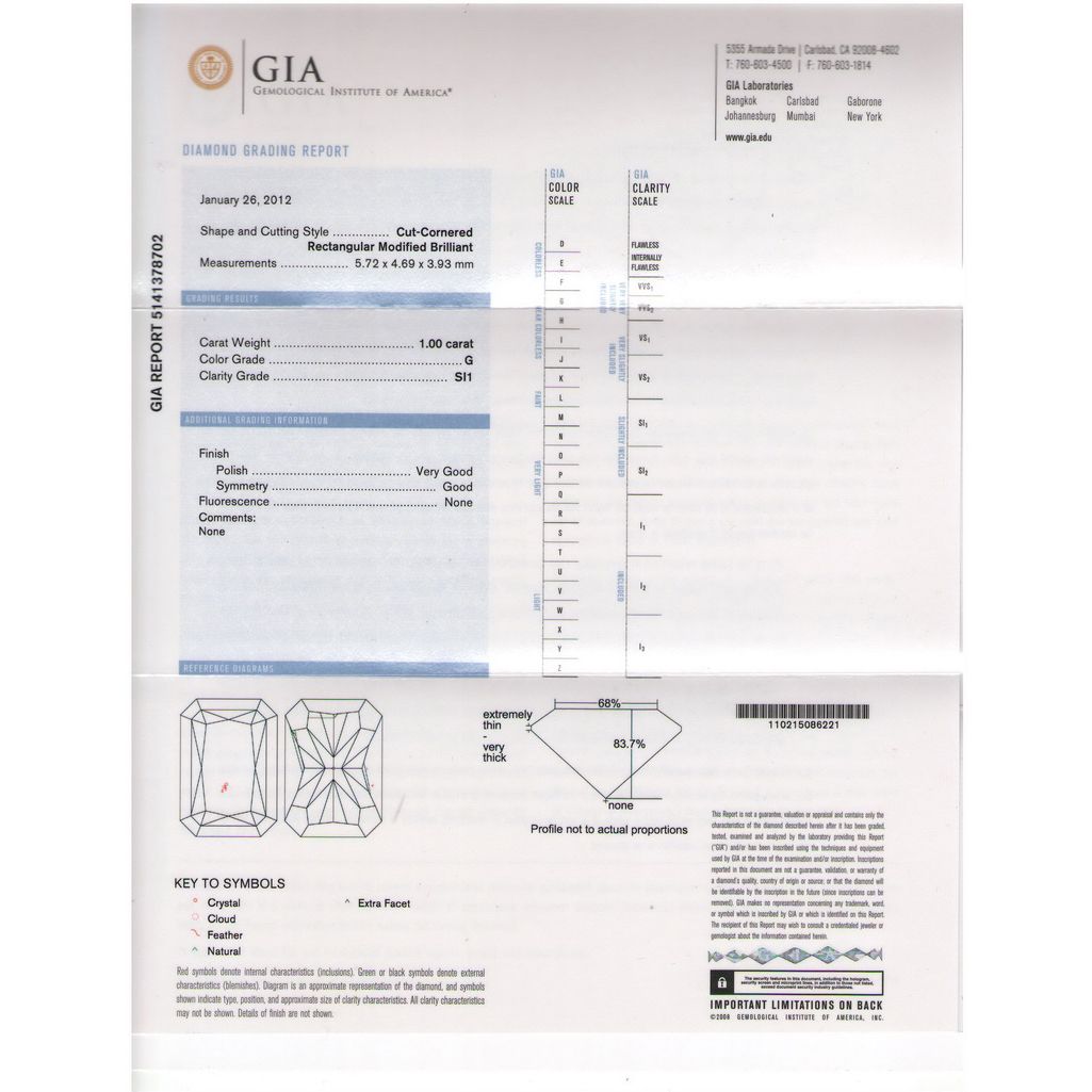 GIA 1.00 ctw Certified Radiant Diamond G,SI1 **|**|** ; MSRP: $6000