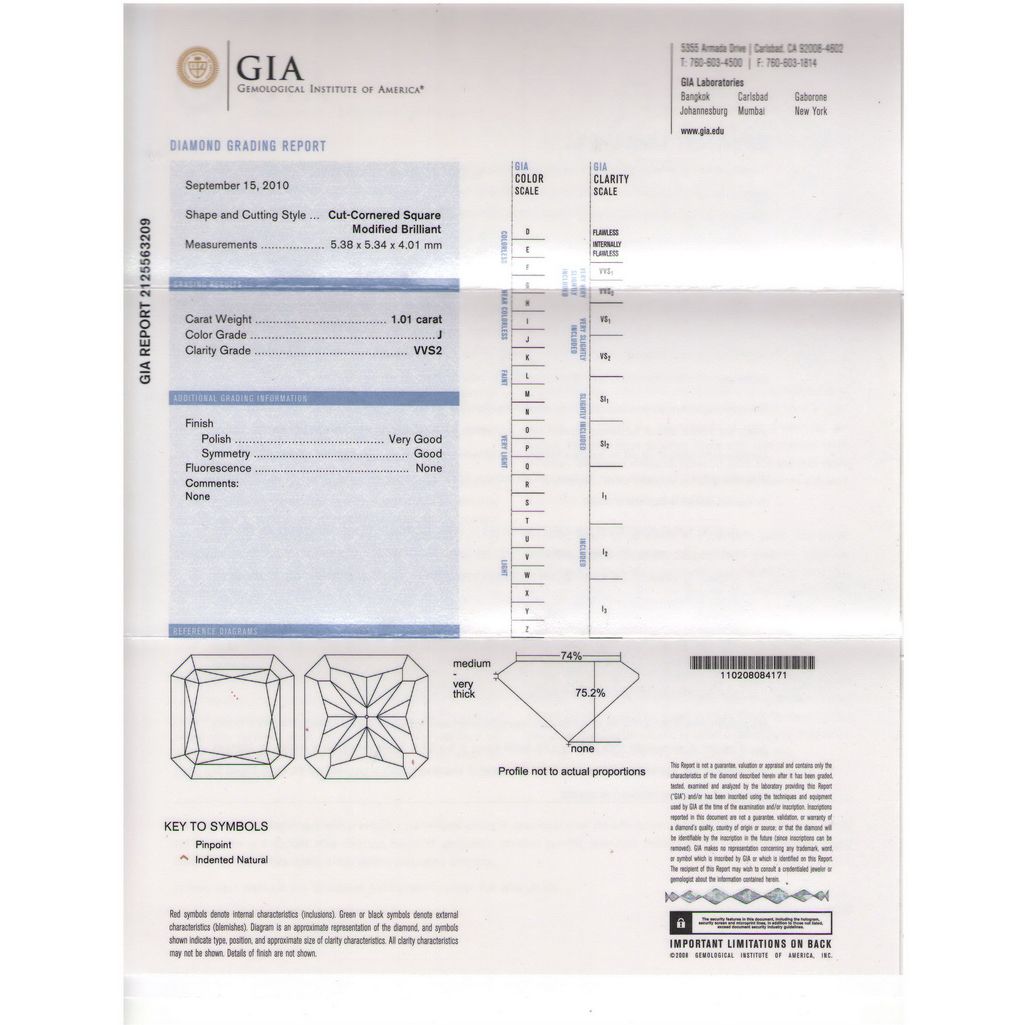 GIA 1.01 ctw Certified Asscher Brilliant Diamond J, VVS **|**|** ; MSRP: $4400