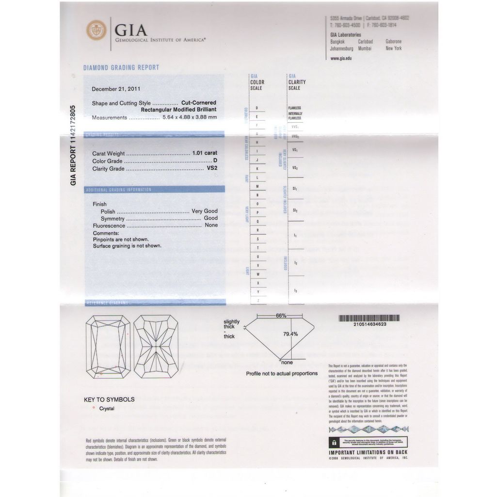 GIA 1.01 ctw Certified Radiant Diamond D,VS2 **|**|** ; MSRP: $8700