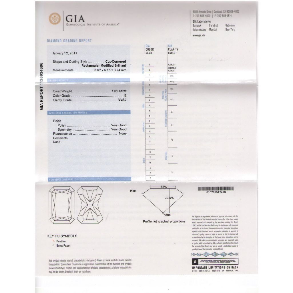GIA 1.01 ctw Certified Radiant Diamond E,VVS2 **|**|**  ; MSRP: $11100