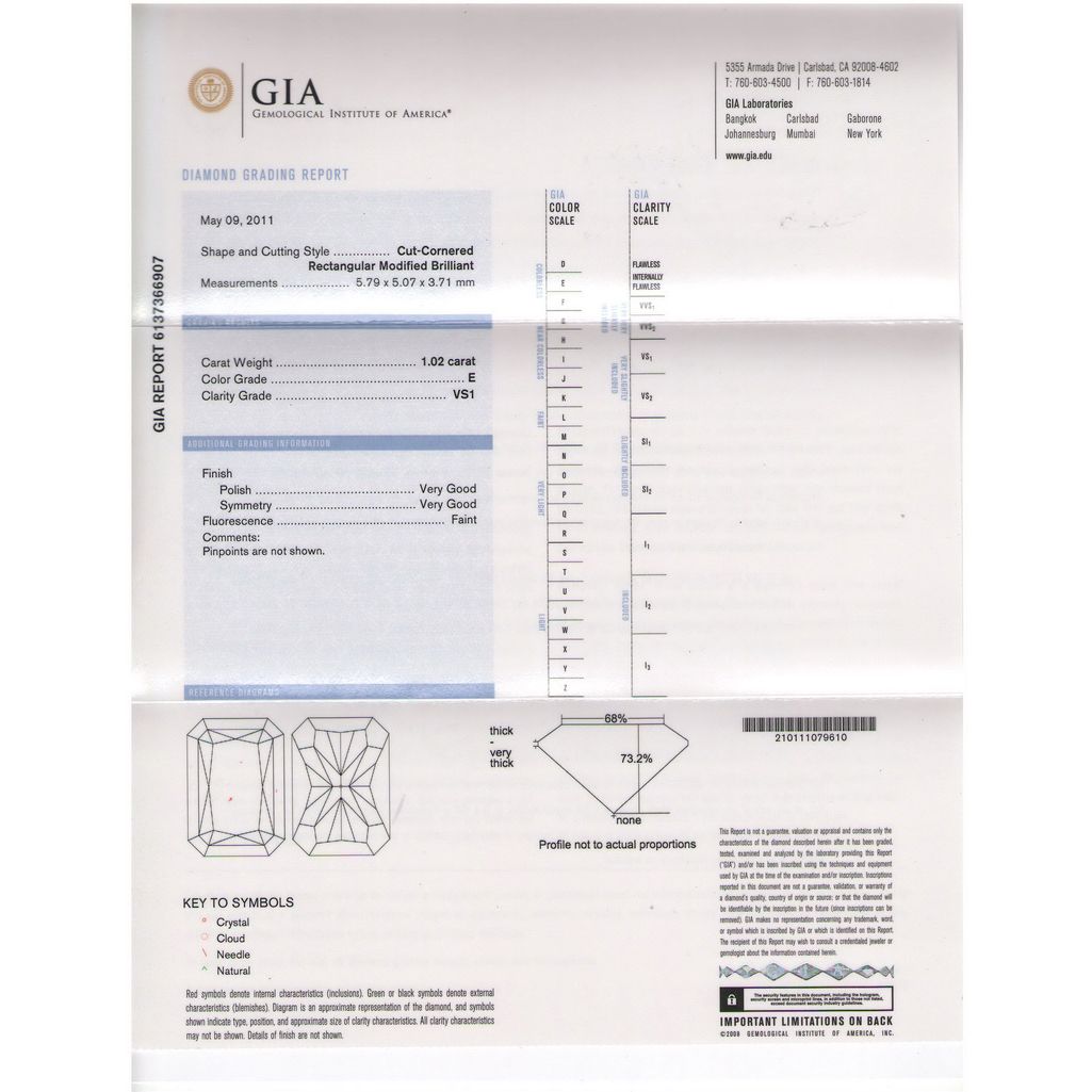 GIA 1.02 ctw Certified Radiant Diamond E,VS1 **|**|**  ; MSRP: $9400