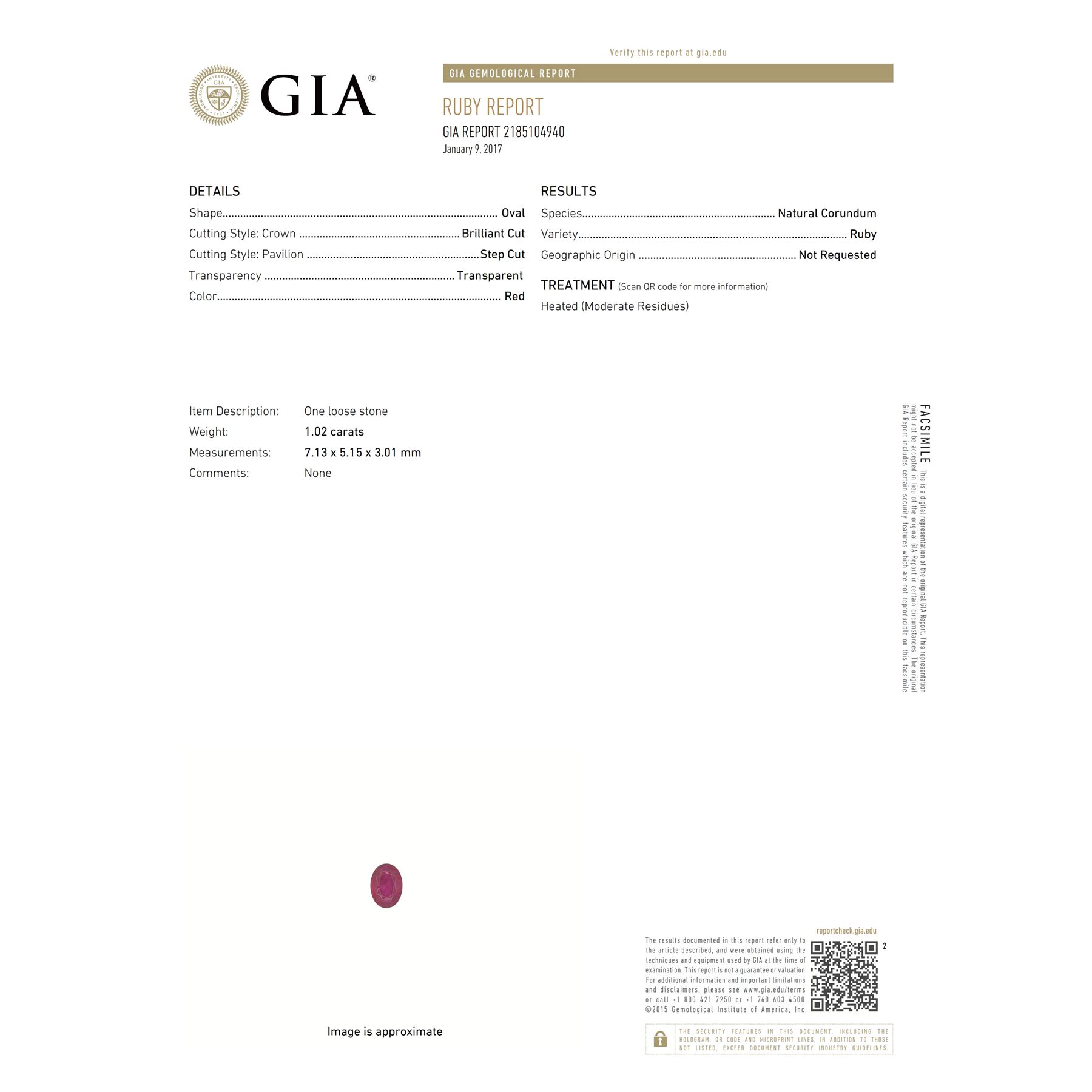 1.03ct Ruby Oval cut 7.13x5.15x3.01 GIA# 2185104940 #R-808