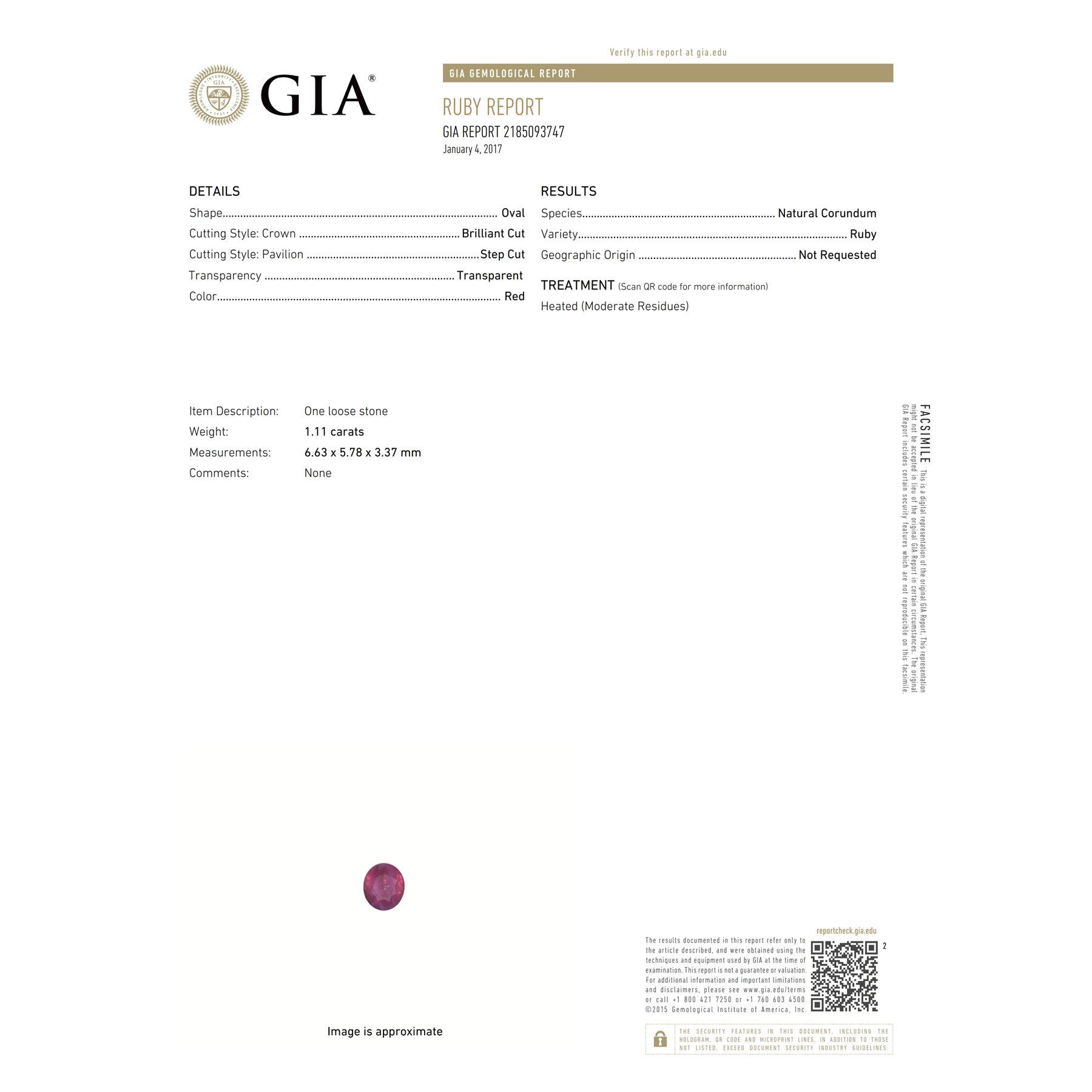 GIA 1.11ct Ruby Oval Cut 6.6 x 5.8 x 3.3 GIA #2185093747 #R-805