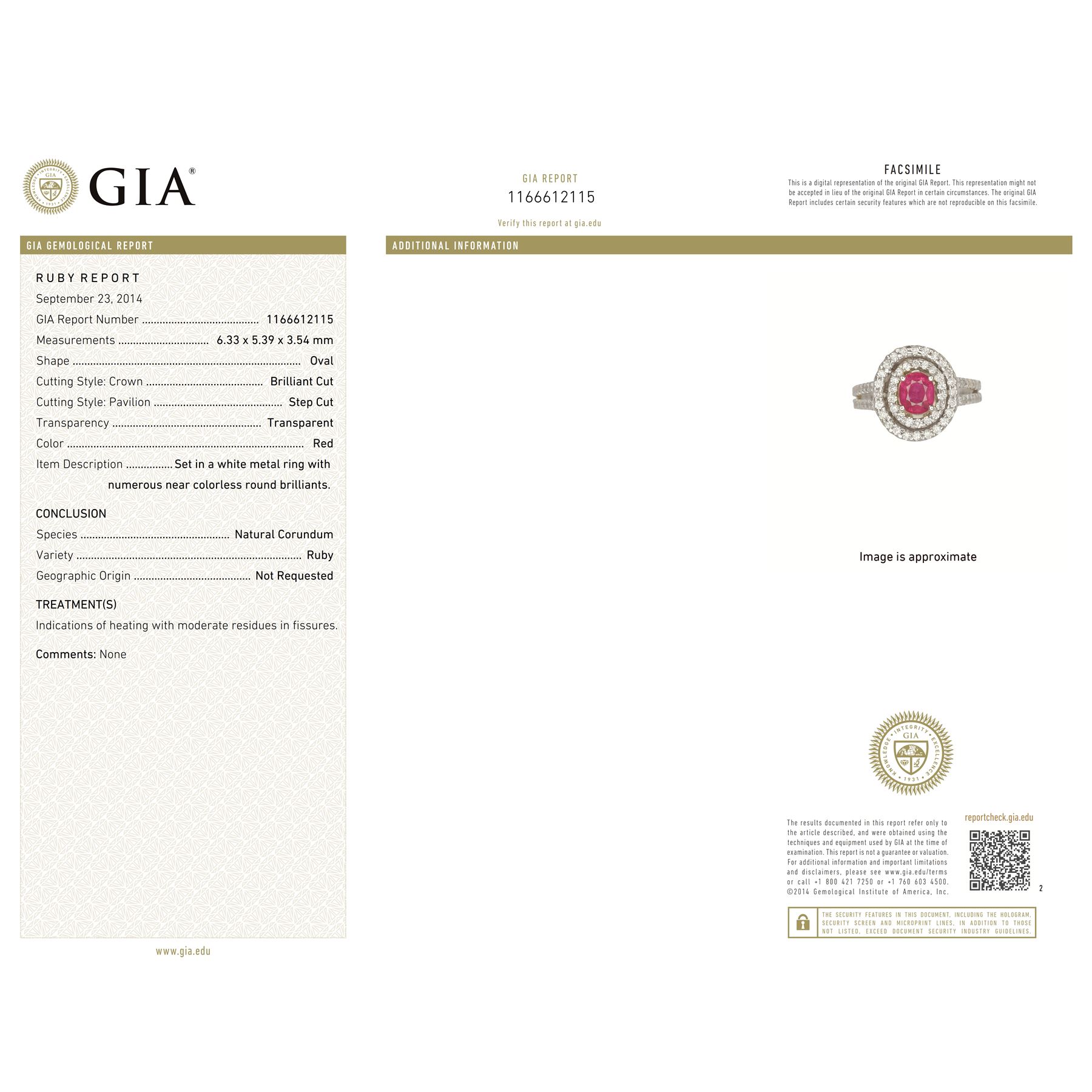 18K White Gold Ring 3.41gm / Diamond 0.59ct / Ruby 1.19ct / GIA # 1166612115