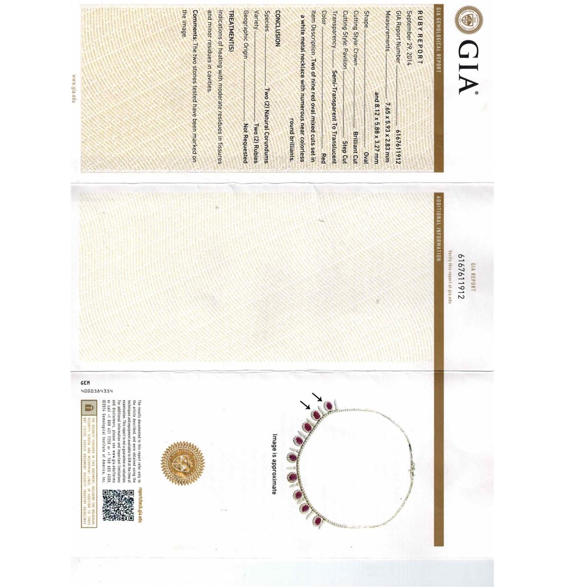 14K WHITE GOLD NATURAL RUBY NECKLACE:30.46 GRAMS/DIAMOND:5.49CT/RUBY:12.20CT/GIA #6167611912/#GVN1177/No Lead or Glass filling