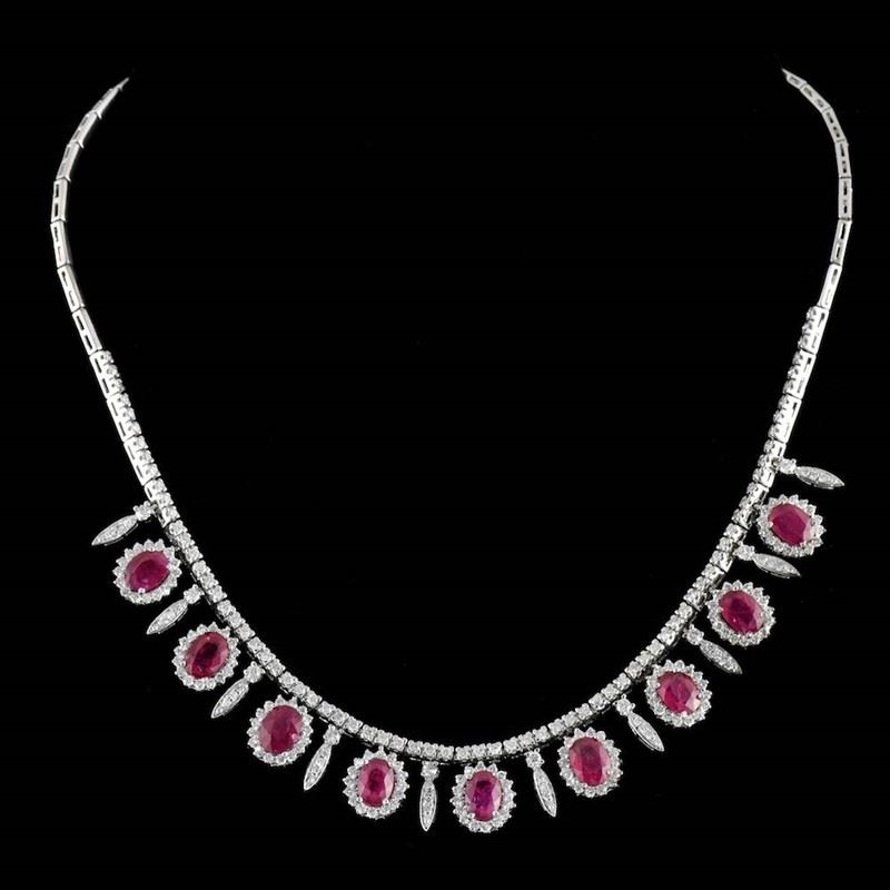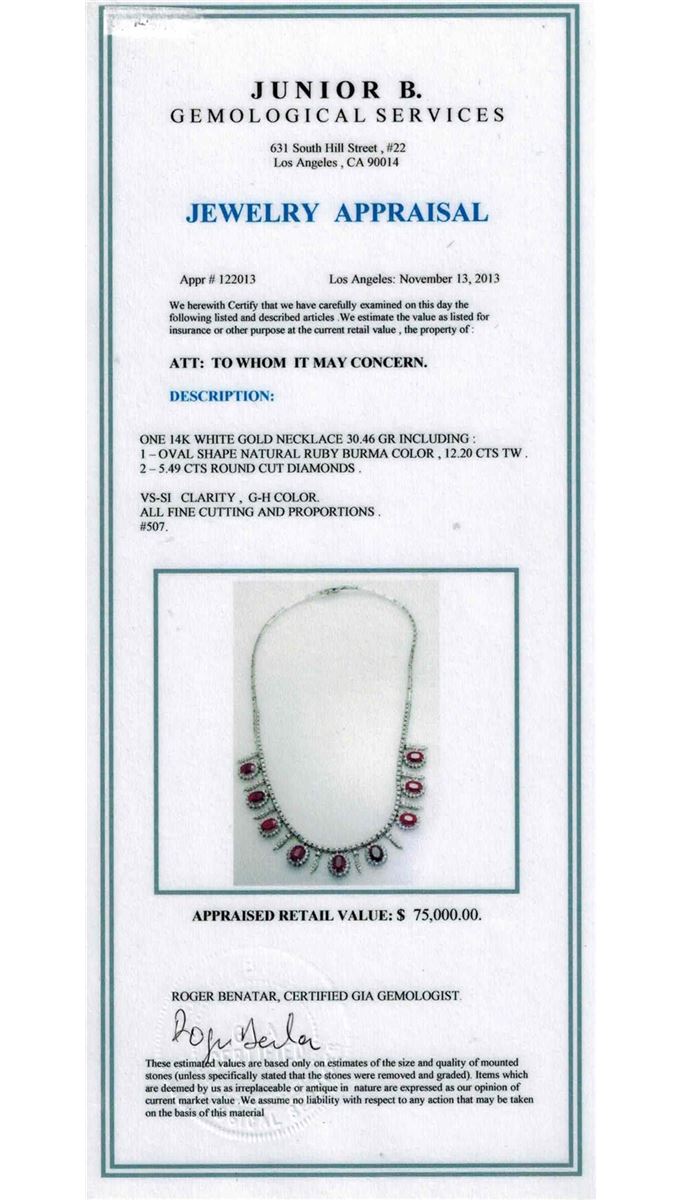 14K WHITE GOLD NATURAL RUBY NECKLACE:30.46 GRAMS/DIAMOND:5.49CT/RUBY:12.20CT/GIA #6167611912/#GVN1177/No Lead or Glass filling