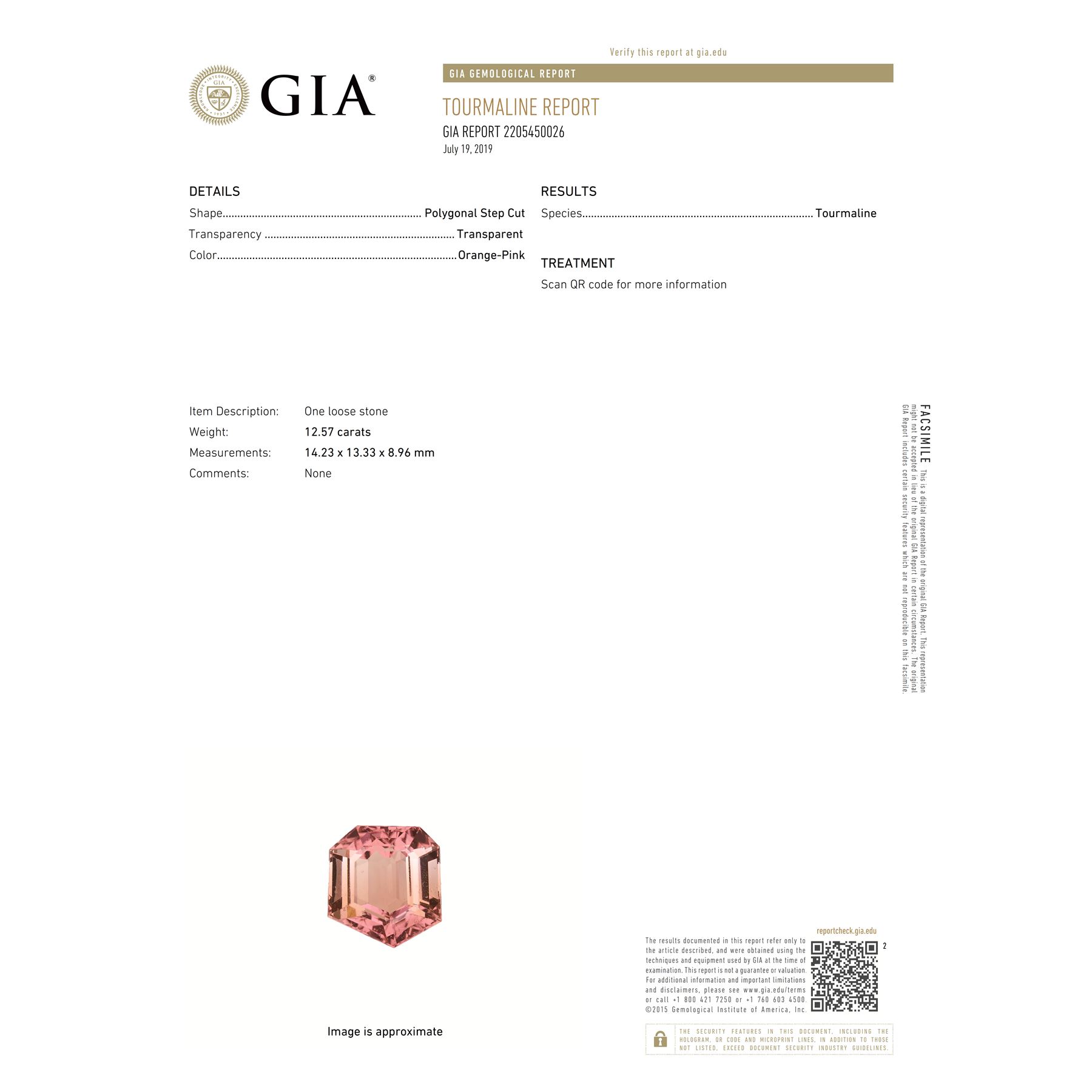 12.57ct polygonal Step Cut Shape Tourmaline 14.23 x 13.33 x 8.96 mm GIA #2205450026 #TR-578
