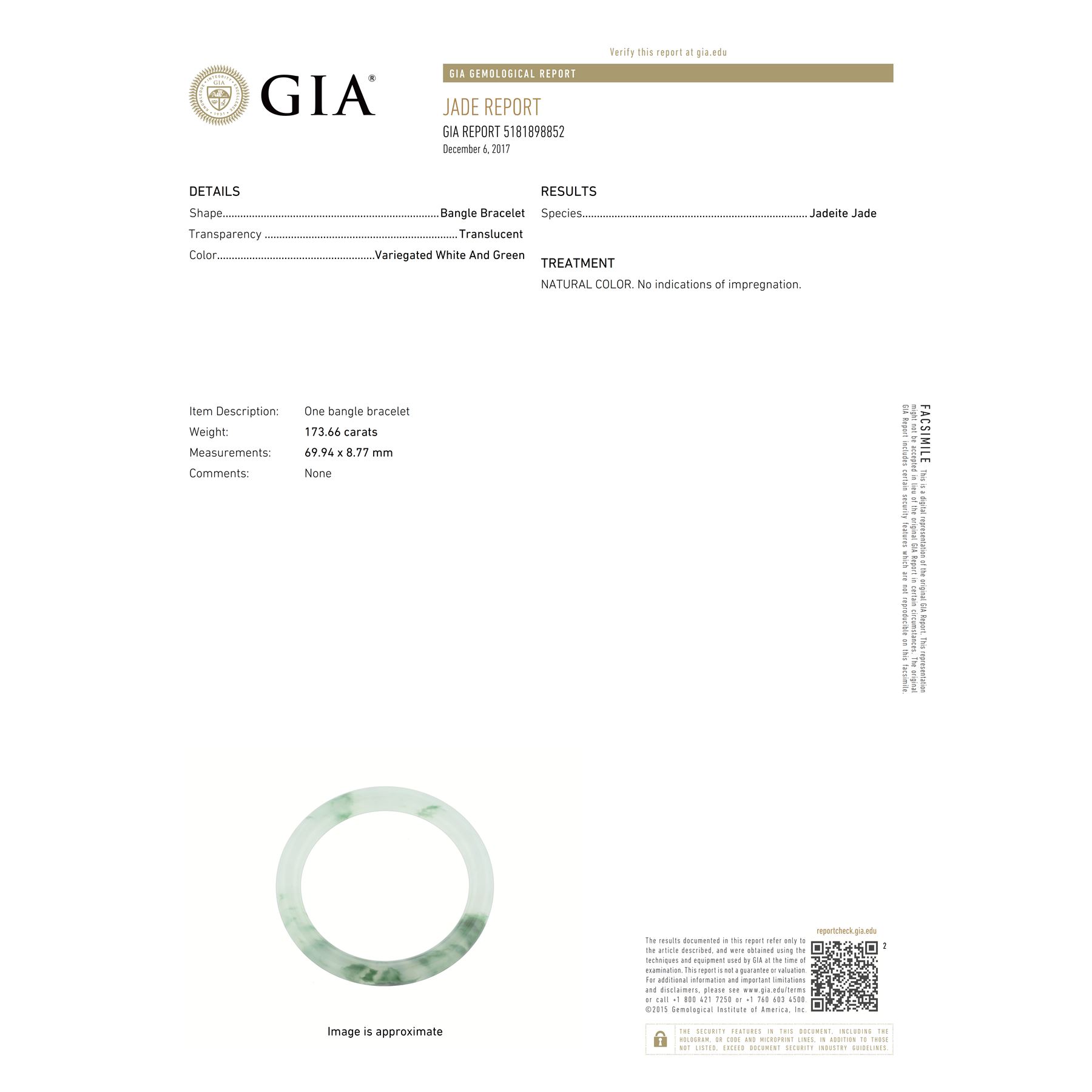 GIA 173.66ct Jadeite Jade Type A Bangle 69.94 x 8.77 mm GIA# 5181898852