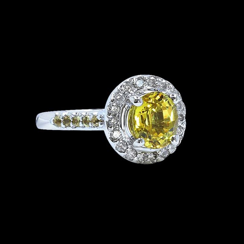 14K WHITE GOLD NATURAL CEYLON YELLOW SAPPHIRE RING: 6.02GRAM/Y.SAPPHIRE :0.23CT /YELLOW SAPPHIRE: 2.32CT/DIAMOND :0.33CT/#GVR1272