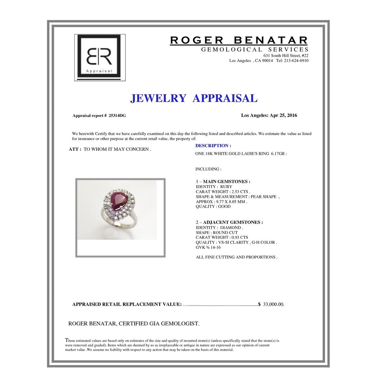 18K WHITE GOLD RUBY RING:6.17GRAM/ DIAMOND :0.93CT/RUBY :2.53CT/#GVR1249/ NO LEAD OR GLASS FILLING