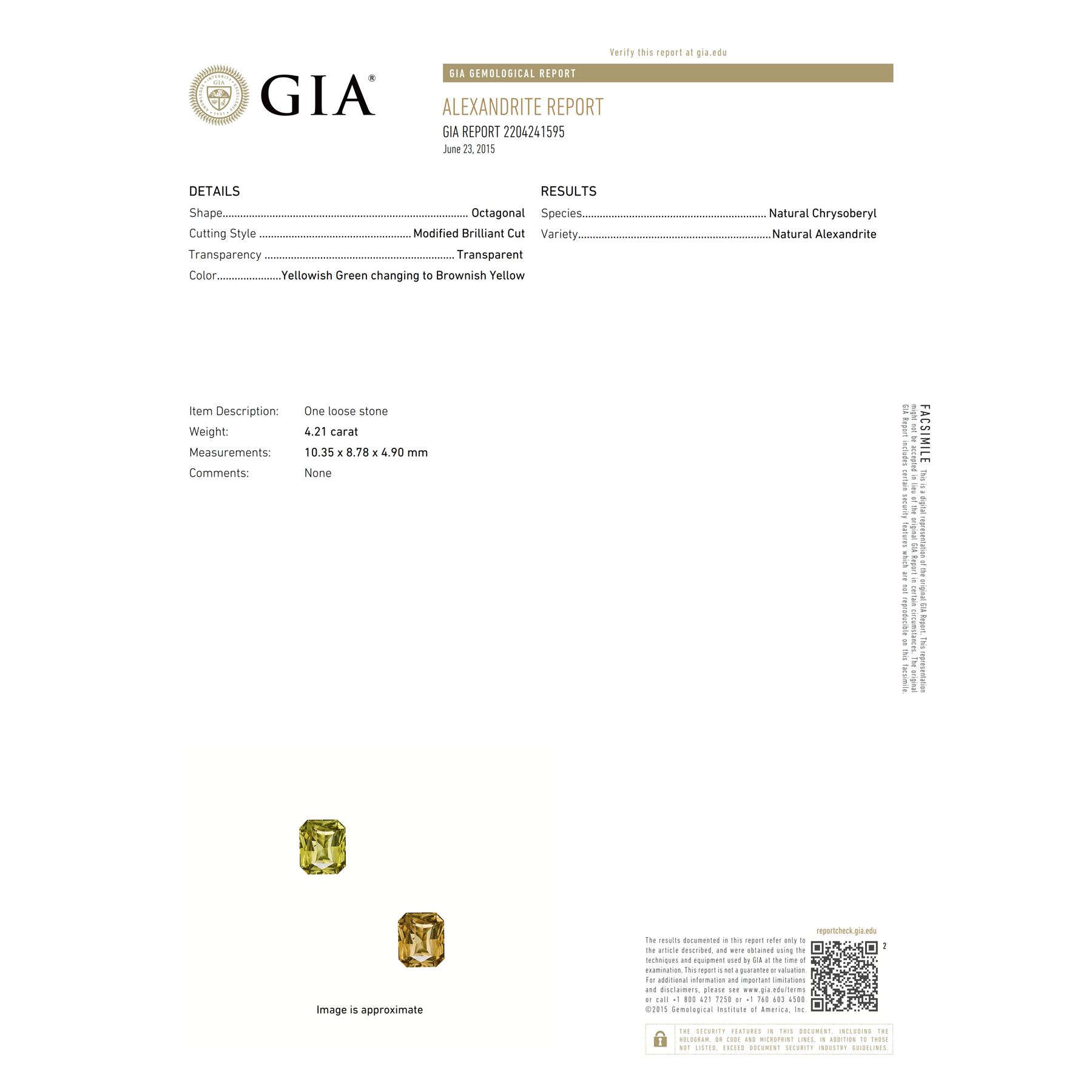 4.21ct Alexandrite, Octagonal cut GIA# 2204241595 #13491A