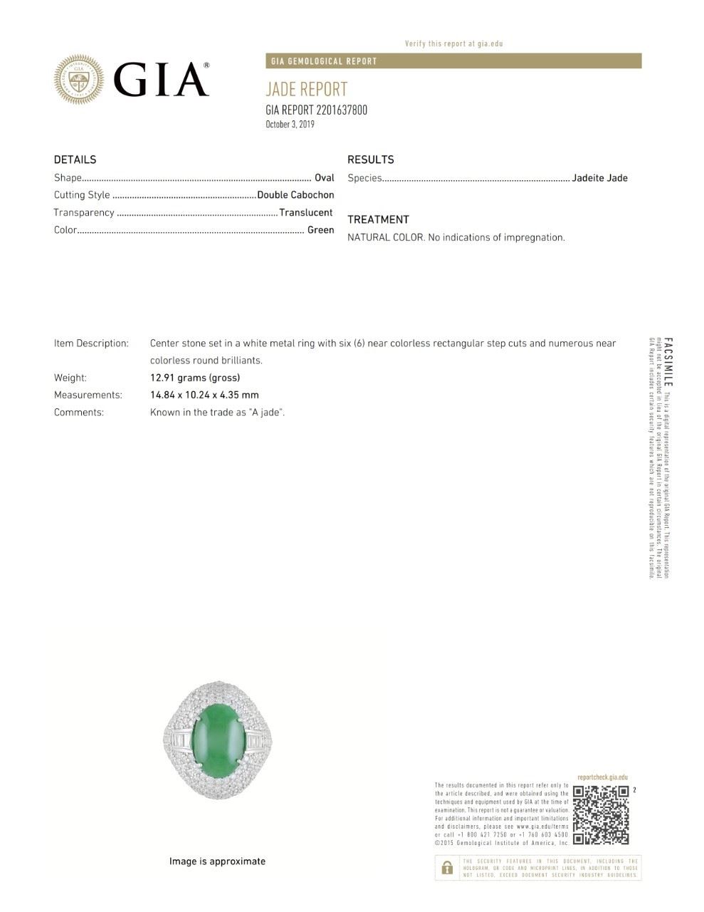 18K White Gold Ring : 10.95gm / Type A Imperial Jadeite Jade 5.41ct / Diamond 4.22ct / GIA #2201637800