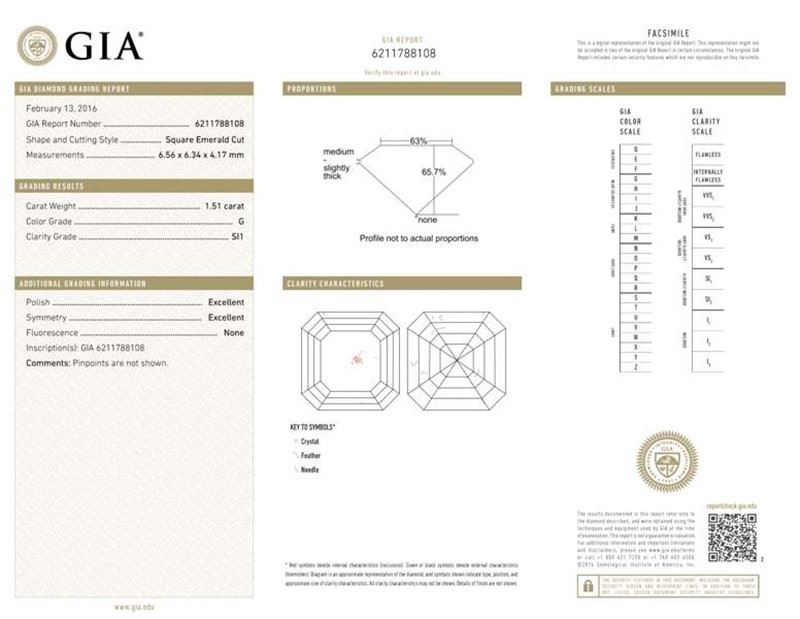 GIA/ASSCHER/G/SI1/1.51Ct/EX/EX/#6211788108/#F50193
