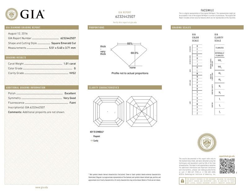 GIA/ASSCHER/G/VVS2/1.01Ct/EX/VG/#6232442507/#F55176