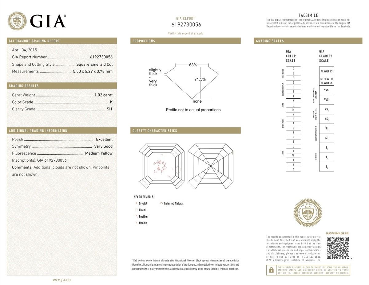 GIA/ASSCHER/K/SI1/1.02Ct/EX/VG/#6192730056/#F43674