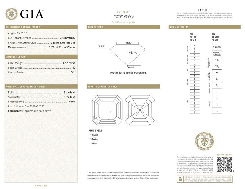 GIA/ASSCHER/K/SI1/1.92Ct/EX/EX/#7238496895/#F55430