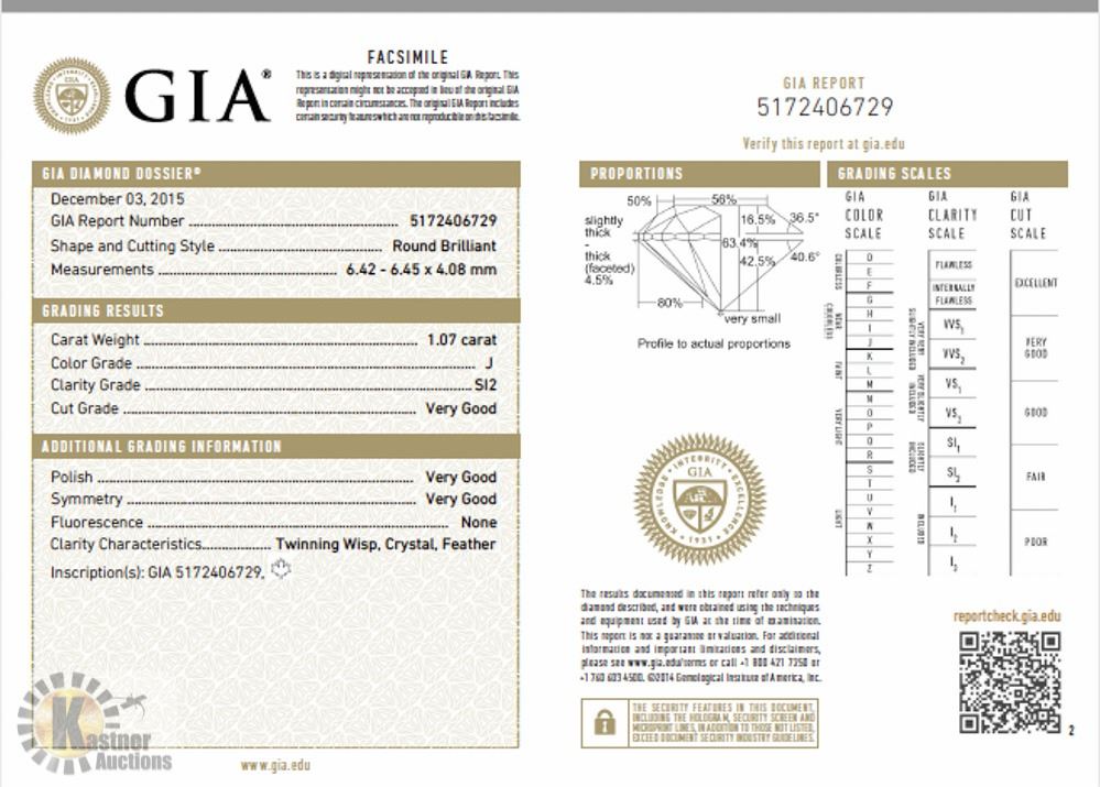 CHAIN LENGTH: 18" WEIGHT: 2.5 GRAMS METAL: 18K WHITE GOLD DIAMOND CARAT: 1= 1.07CTS T.W. CLARITY: SI2 COLOUR: J CUT: ROUND BRILLIANT GIA CERTIFIED #5172406729 RETAIL: $5,888.00 SKU:185-17904